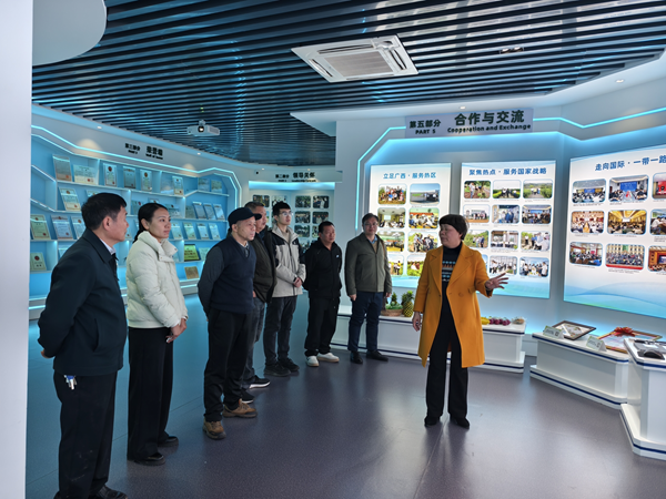 1月9日,玉林市兴业县卖酒镇卖酒村第一书记黄其椿组织村“两委”干部一行5人到广西农业科学院参观学习,就深化科技帮扶、产业发展等事宜进行深入沟通。