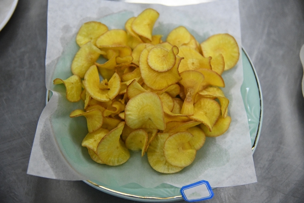【品种特性】食用型木薯品种。株型直立,结薯集中,高产,低氰苷,富含β-胡萝卜素。生产性试验鲜薯平均产量2.72吨/亩,块根淀粉含量25.2%,氰苷含量35.1mg/kg,β-胡萝卜素含量454.0μg/100g。口感风味佳、品质好、综合性状优,适宜蒸煮食用。