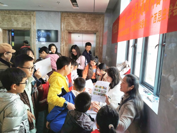 活动期间,昆虫馆安排了专业科研人员进行讲解导览,结合昆虫分类学、行为学及生态学知识,生动解读昆虫的形态特征、生活习性及其在生态系统中的作用。同时,现场设置了图文并茂的的昆虫知识竞答活动,引导参与者在观察与思考中巩固所学知识,沉浸式探索昆虫世界的奥秘。