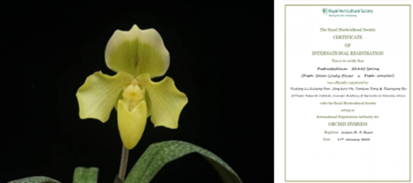 近日,由花卉所兰花遗传育种团队选育的2个兜兰新品种Paphiopedilum GXAAS Hope(‘西之望兜兰’)和P. GXAAS Spring(‘西之春兜兰’)在英国皇家园艺学会(Royal Hoticultural Society,简称RHS)登录。