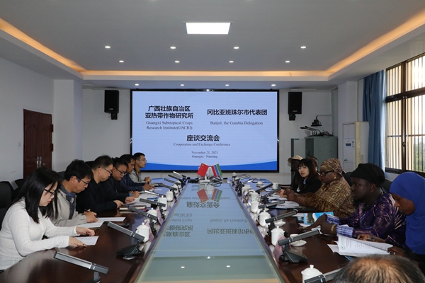 11月21日,非洲冈比亚共和国首都班珠尔市市长洛荷・马利克・罗维率团一行6人到访广西热作所开展考察交流活动。所党委副书记、所长陈赶林,副所长覃剑峰及相关部门负责人参加交流。