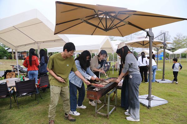 活动在青翠开阔的大草坪上展开,现场烟火升腾、欢声笑语不断。同事们分工有序,默契配合,生火、调酱、翻烤各司其职,香气四溢的烧烤环节迅速拉近了彼此距离,现场洋溢着浓浓的“职工之家”的温暖与活力。