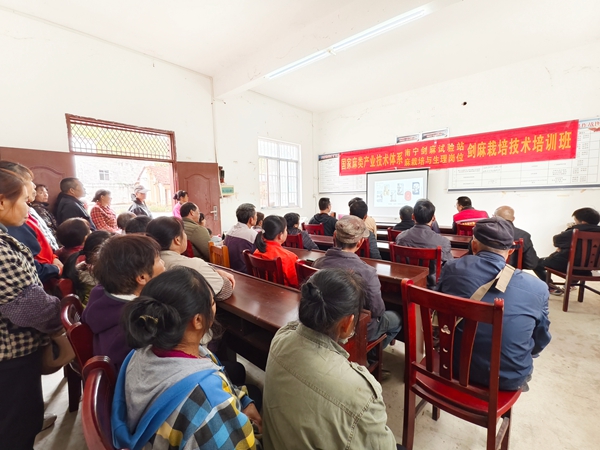 为提升剑麻种植户科学管理水平,推动产业高质量发展,11月19日,广西热作所经济作物研究中心主任、国家麻类产业技术体系南宁剑麻试验站站长陈涛一行7人赴大新县五山乡常屯开展“室内讲解+田间实操”剑麻种植管理技术专场培训。五山乡三合村驻村第一书记、村干部及种植户等60余人参加培训。