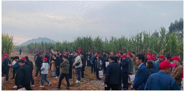 12月2日,我院甘蔗科技人员、国家乡村振兴重点帮扶县罗城科技特派团甘蔗组组长、国家糖料产业技术体系甘蔗育种岗位刘昔辉及团队成员,受邀参加河池市2025年糖料蔗收获机具推介暨作业演示现场会,并在甘蔗种植、收获现场进行甘蔗优良品种、配套栽培技术培训。刘昔辉从甘蔗优良品种区域性、品种特征特性、布局思路等方面,以及因地制宜的良种良法配套栽培技术角度进行了现场培训,现场探讨气氛活跃。目前罗城蔗区甘蔗种植面积约18万亩,桂糖44号是第一主栽品种,下一步特派团将联合罗城糖厂重点示范推广桂糖76号,助推罗城蔗糖业健康发展。