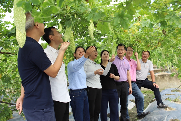 5日上午,与会人员前往福州闽侯白沙镇福建田美种业科技有限公司的育种农场现场观摩苦瓜新品种的田间表现情况,来自全国的近350个创新品种集中展示,现场专家对展示的苦瓜新品种进行品鉴与点评,蔬菜所参加展示的桂农科17号和桂农科20号综合抗性好、田间表现优异得到了现场专家和企业代表的认可。5日下午,在福建农林大学召开了专题学术交流报告会,中国农业科学院蔬菜花卉研究所孙进京研究员、华南农业大学园艺学院陈长明教授、广东省农科院蔬菜研究所李俊星研究员等6位专家围绕黄瓜单性花发育调控机制、辣椒素转运和积累的分子机制、南瓜芋香味性状解析做了学术交流。冯诚诚做了题为“苦瓜抗白粉病育种研究与应用”的学术报告,就苦瓜育种与栽培存在的关键共性问题及未来趋势进行了深入的探讨和交流。