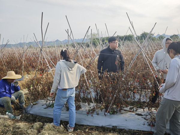 当前,田阳区番茄采收进入尾期,整体受冰雹灾害影响较轻,局部设施大棚骨架垮塌、棚膜破损。结合现场灾情实际,技术团队为农户提出两项减损举措:一是抢收达标果蔬减损,二是加固骨架、更换棚膜,确保设施功能恢复。针对番茄采收进入倒计时,部分露地田块已启动“清园转稻”作业的情况,黄杰结合稻菜轮作规律提出:番茄采收后立即灌水整田,利用水层灭杀土传病虫害;将秸秆粉碎还田增施有机肥,并及时撤除大棚膜通风降湿,稻田要提前7天撒生石灰消毒,构建水稻育秧“无菌床”等指导建议。