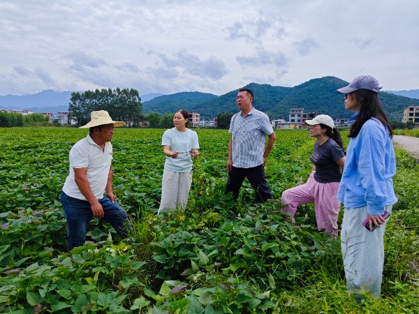 首站,科技人员抵达黄关镇兴秀村红薯种植示范基地。据基地负责人文成发介绍,今年基地推广“水稻—甘薯”水旱轮作模式。该模式通过作物交替种植,促进土壤养分循环利用,甘薯生长过程中有助于改善土壤结构,为下茬水稻积累肥力,实现“种一季水稻、收一茬甘薯”的生态循环。科技人员实地查看甘薯长势,发现部分田块存在根腐病等问题,随即向基地负责人系统讲解该病的识别特征与综合防治措施,指导开展科学防控。
