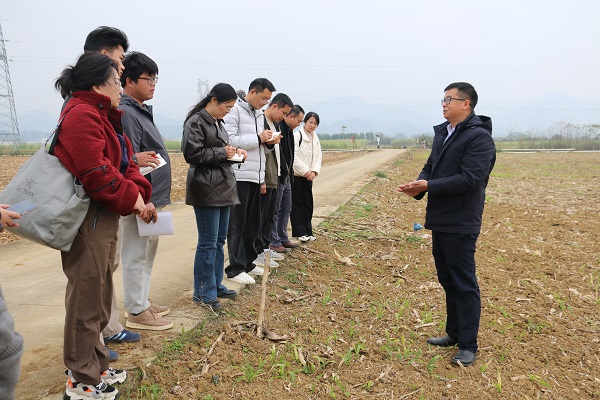 在座谈环节,考察组成员重点咨询了玉米各生育阶段的田间管理要点、病虫害防治方法、以及新技术在高产创建中的应用前景等问题。河池分院技术人员逐一作出详细解答,并结合都安玉米生产条件,就品种选择、种植密度、肥料施用、灾害应对等方面提出了具体建议,分享了在建设高产攻关示范点、推动大豆玉米带状复合种植等方面的实践经验,提供了可操作、可推广的技术模式。双方一致表示,将进一步加强农业科技合作,共同推动粮油产业高质量发展,助力农民增产增收。