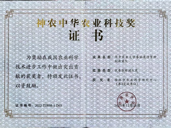 神农中华农业科技奖是2006年经农业部、科技部批准设立的全国性农业科技奖项,旨在表彰对我国农业科技进步作出突出贡献的集体与个人。此次获奖,成功实现了桂林分院农业科技工作在该奖项领域的零突破。
