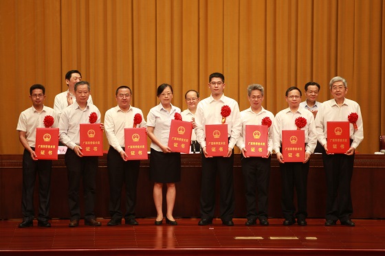 会议表彰了2018年度获得广西科学技术奖、国家科学技术进步奖及广西“金绣球友谊奖”的获奖单位和获奖人员,授予148项成果为2018年度广西科学技术奖,其中科学技术特别贡献类特等奖2项,一等奖9项、二等奖55项、三等奖82项。